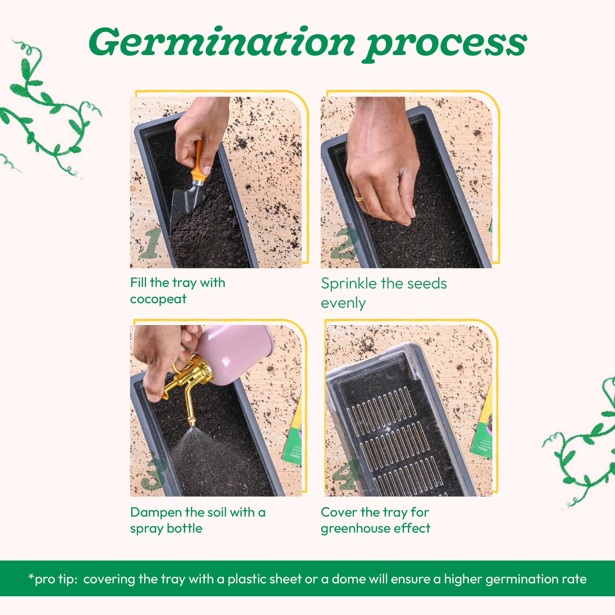 The Amaranth (Chawli Bhaji) is a tall annual plant with bright green leaves and vibrant flowers. It is the OG superfood worldwide and has been endlessly praised in even ancient texts. Amaranth is packed with essential nutrients and vitamins and the leaves are not the only edible part of this wonderful plant. The seeds are also a great source of gluten-free protein, packed with essential nutrients that will keep you full for longer. The Amaranth seeds are easy to grow, resilient, and hardy once they mature. So, go on and plant with confidence with the highest quality Chawli seeds!