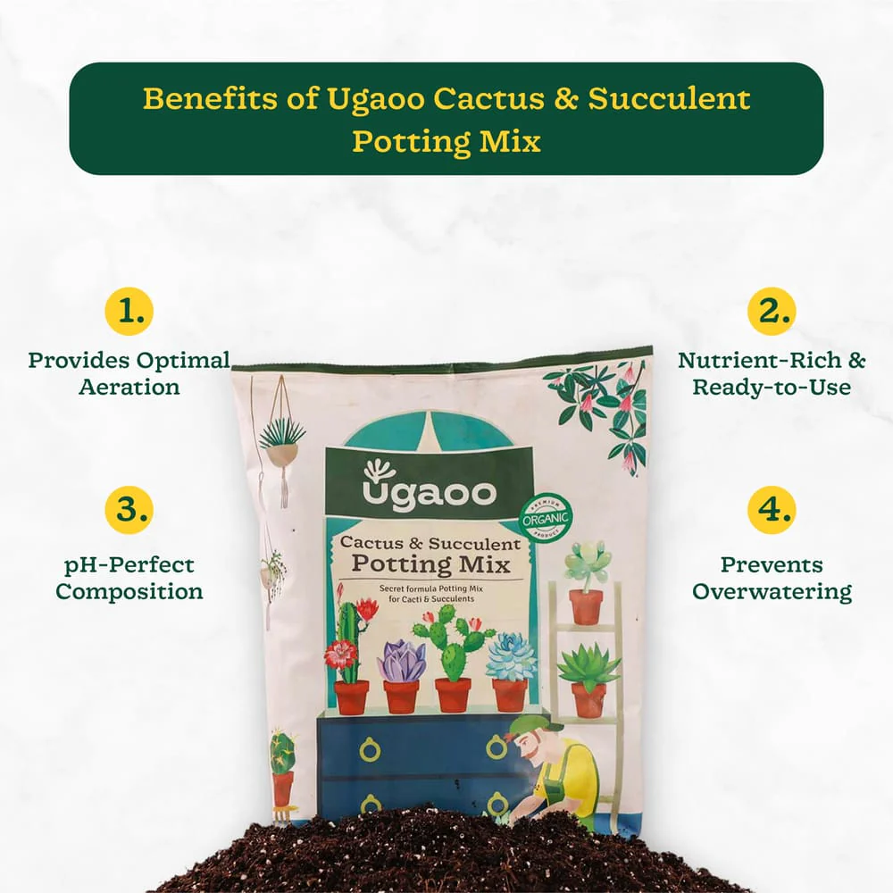 The best potting mix to grow your succulents in, just open the packet and plant your succulents in it without any doubt. Curated mix of the correct ingredients in the right proportion to help your succulents and cacti thrive. The succulent and cacti potting mix not only allows for quick drainage of water but also supports healthy root growth. With very little organic matter, this mix is a very close a copy of the plant's natural growing environment and keeps your treasured succulents and cacti happy.