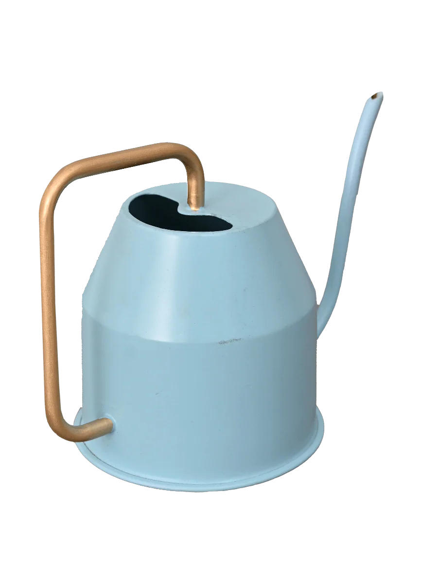 The watering can that not only help avoids spillage while watering plants but also looks amazing as a decor piece. Made of powder coated metal, our watering cans are designed for longterm usage as well as for displaying proudly as garden decor. With a sky blue and gold matte finish, the can fits well in any decor scheme. The thin long snout helps you water plants kept at a height and also avoid spilling water onto the floor or furniture while watering even the smallest plants.