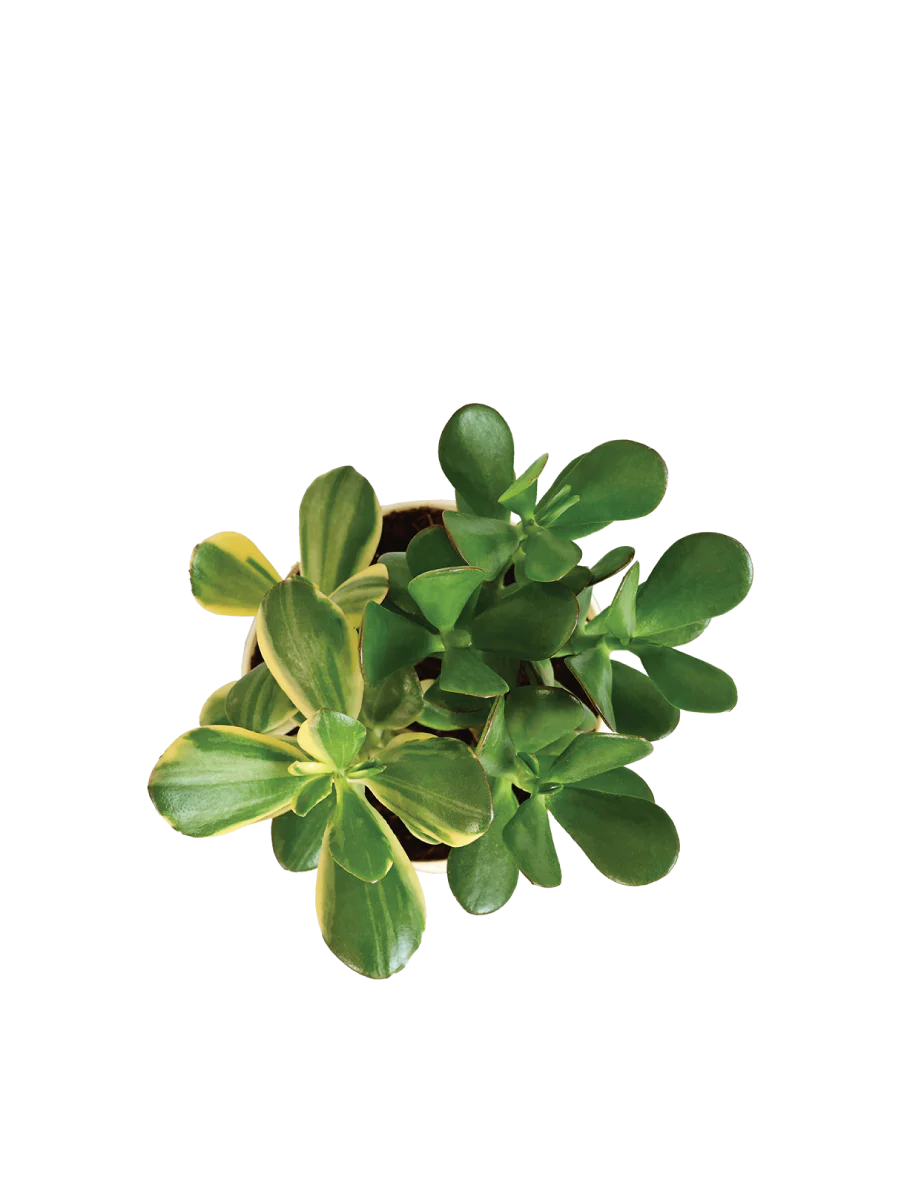Jade plants are famed not only for their easy to care for nature but als for their long lives - they can live forever if cared for well. Our Jade plant combo has not one, but two of the jade varieties the big leaved crassula ovata in green and its variegated counterpart. The emerald green leaves contrast beautifully against the off white and green variegated leaves that can hold your attention for hours at end. Extremely easy to care for and a lover of partial to bright indirect light, the crassula is also said to bring luck and prosperity into your home. SO why stop at home, get two in the same planter, double the benefits for the same amount of plant care.